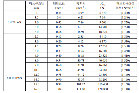 鋼絲繩斷面與破斷拉力(僅供參考)