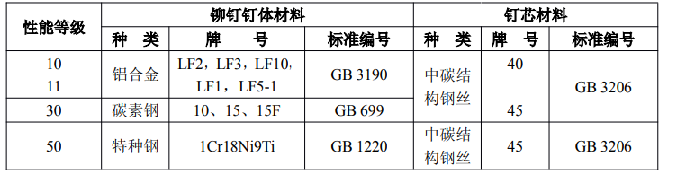 鉚釘釘體材料的規定